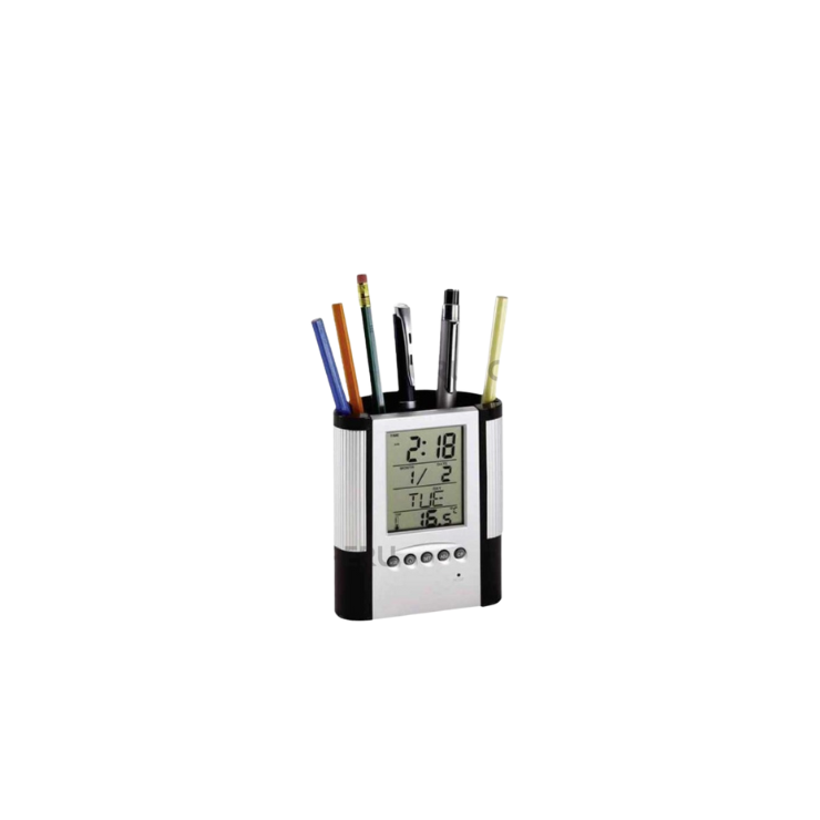 Medidas: 10 x 12 x 5 cm.Portalapicero de plástico  con reloj en la parte frontal.