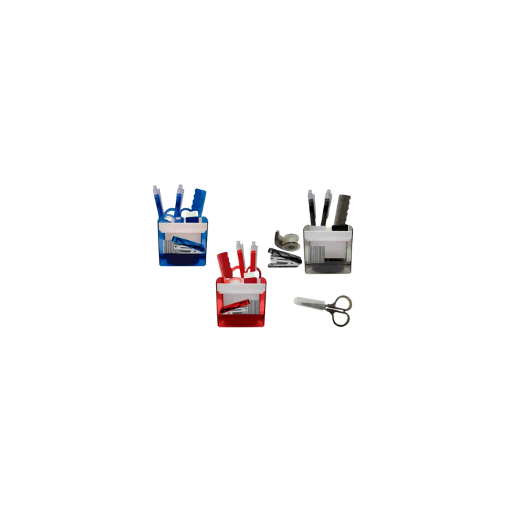 Medidas: 8 x 9.0 x 7.9  Set de Escritorio de plástico giratorio, incluye 1 engrapadora, grapas, 1 tijera con tapa,